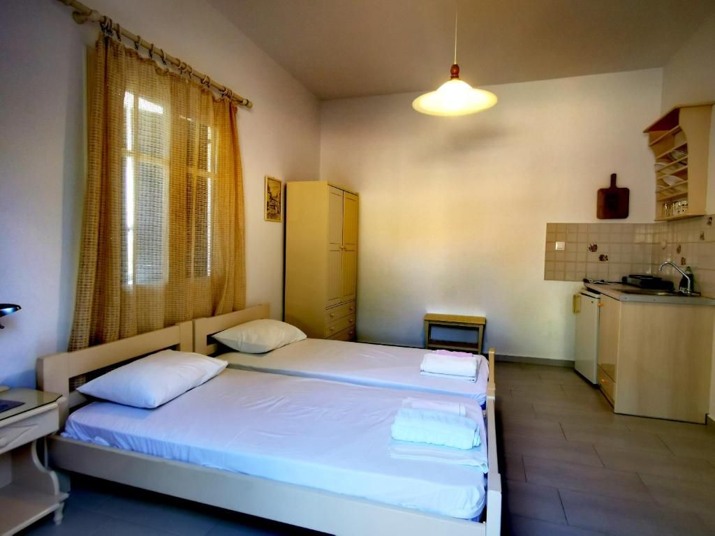 This air-conditioned studio is located on the ground floor. Includes kitchenware and tile/marble floor.